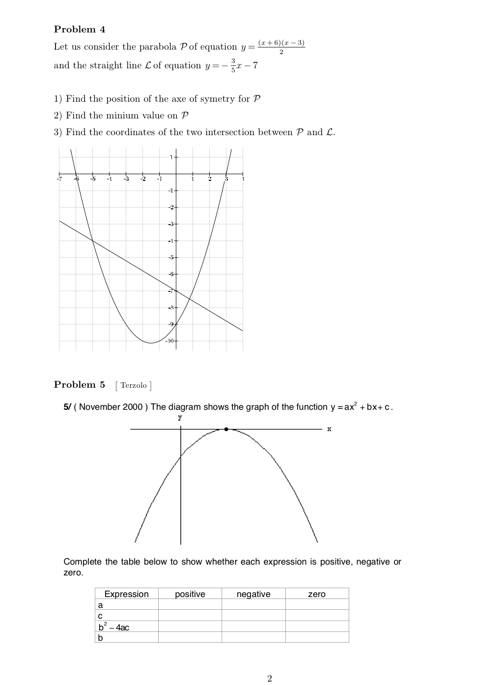 The diagram below shows part of the graph of f where f(x) = ax2+ bx + c.