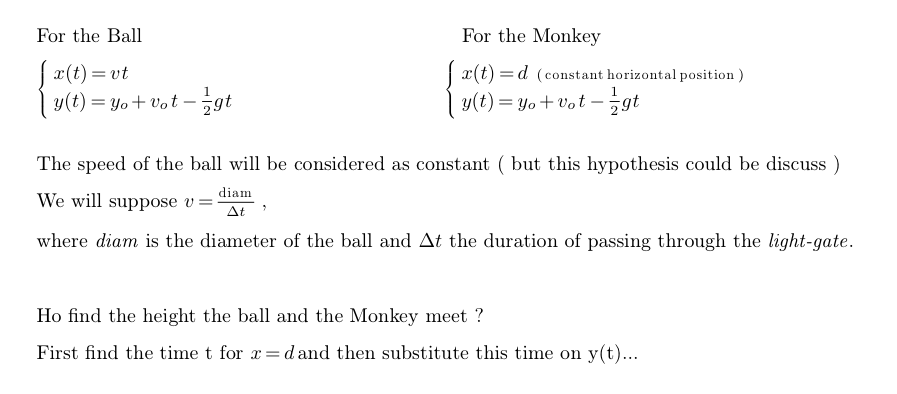 A Monkey let a ball go and it fell. At the same time, an archer aimed the ball and shot.